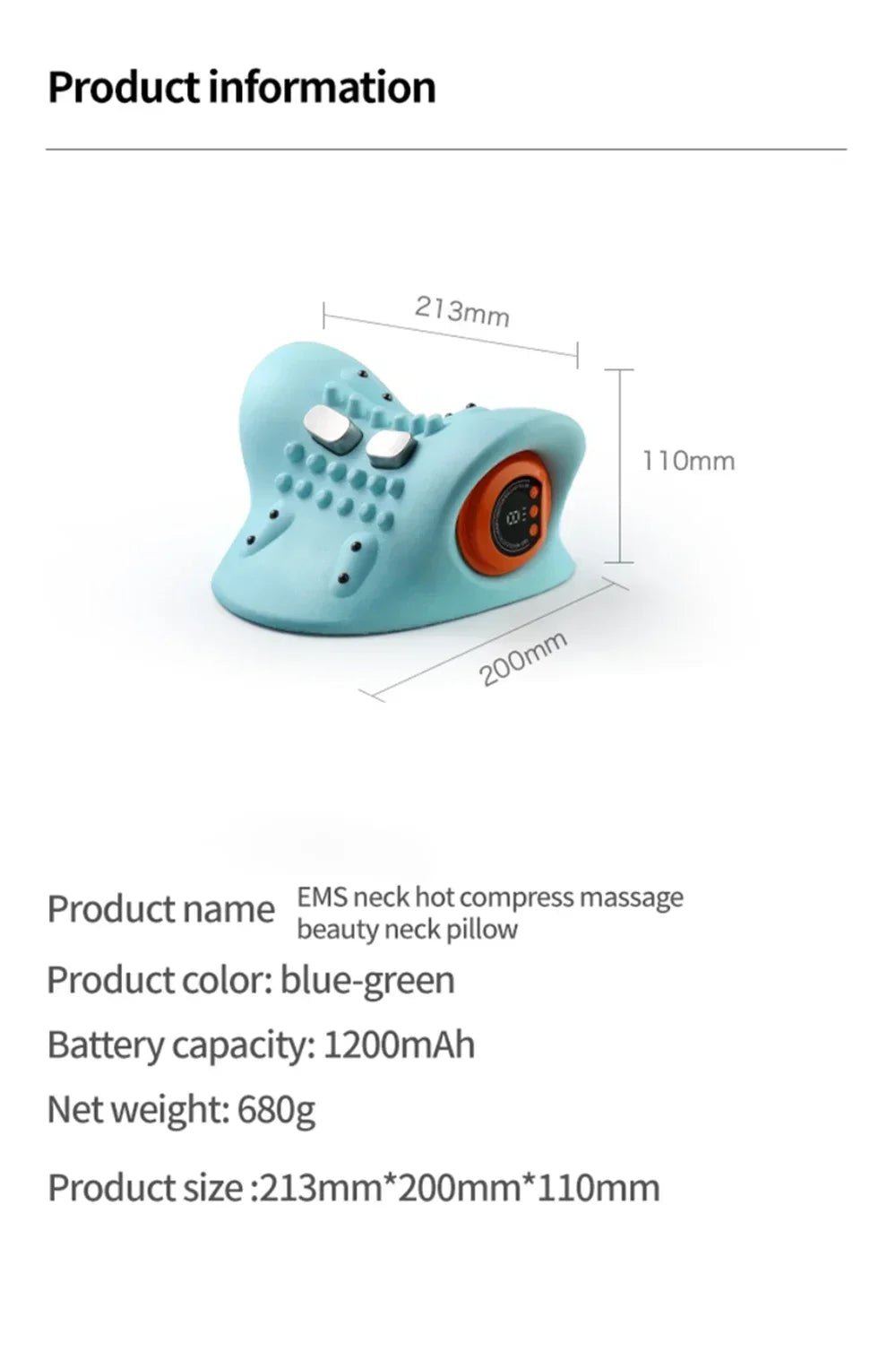 - Function Set: Cervical traction, heating, vibration, EMS micro‑pulses, acupressure support